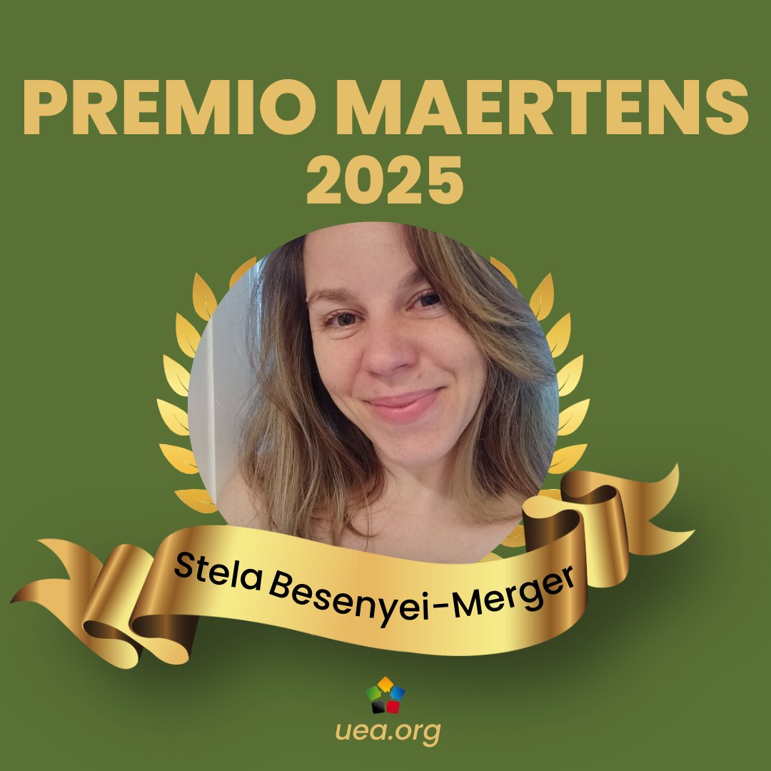 La tre aprezata kontribuanto al la Dulanda Kongreso en Toronto Stela Besenyei-Merger, Esperantisto de la Jaro por 2024, ricevis ankaŭ eksterordinaran movadan premion, donitan “pro ŝiaj originalaj, inspiritaj kaj plurflankaj kontribuoj al la organiza kaj kultura vivo de la Eo-movado.” La Premio Maertens fondiĝis en 2024 por honori Grégoire Maertens, eksa prezidanto de UEA, je lia centjariĝo, kaj aljuĝiĝis unue al Stela, la 1-an de Januaro, 2025, la 101-an naskiĝdatrevenon de Maertens, honora membro de UEA. La premio aljuĝiĝas ne nur pro jamaj kontribuoj al la movado, sed aparte pro la estontaj atingoj kiujn oni antaŭvidas de la premiito. Stela, denaska parolanto, en 2011 komencis sian regulan Esperanto-blogon, Stela Ĉiam Nur Kritikas, kiu plu aktivas. Jam antaŭ tiam Stela multe laboris kontribue al la organizado de diversaj E-aranĝoj, kaj de 2017 ŝi konsilas kaj trejnas E-organizantojn per sia podkast-serio La Bona Renkontiĝo. En 2021, ŝi lanĉis la interretan komunumon Bobelarto, kiu kuraĝigas kaj subtenas verkadon kaj legadon de esperanta literaturo. Ŝi okupiĝas freŝdate pri la feminisma podkasto Radikala Tenero, kaj pri sia nova blogo Stela Havas Opinion Pri La Mondo. Se ankaŭ vi, kiel la aljuĝantoj de la Premio Maertens, atendas de Stela eksterordinarajn estontajn projektojn por la bono de Esperantujo, eblas subteni ŝin per Substack, kaj per Liberapay. Liberapay estas plurlingva (kaj esperantlingva) retejo por poioma donacado al kreantoj kies laboron vi volas daŭrigi. La platformo priskribas sin jene: “desegnita por provizi stabilan amasfinancitan bazan enspezon al kreantoj, ebligante ilin daŭre fari la laboregon, kiu profitas al ĉiuj.”