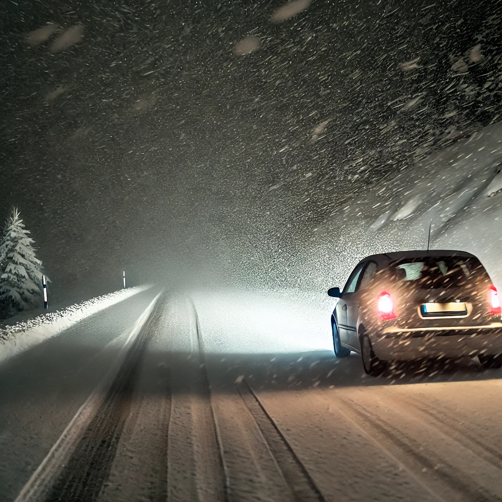 Veturante hejmen de skiada ferio, Karlinjon kaj ŝian familion trafis furioza neĝoŝtormo. La monta vojo fariĝis glitiga, kaj ĉio ekstera malaperis pro kirla vento kaj grandaj neĝeroj.